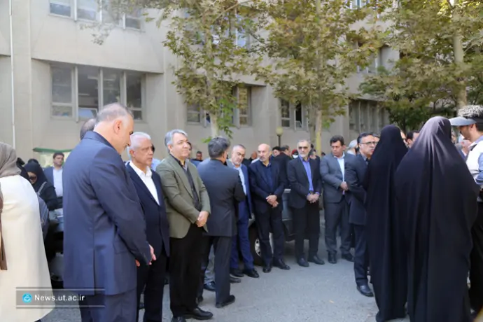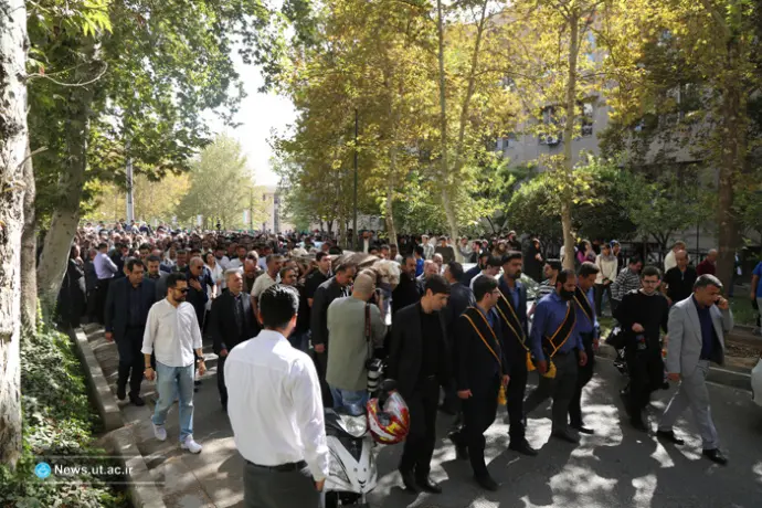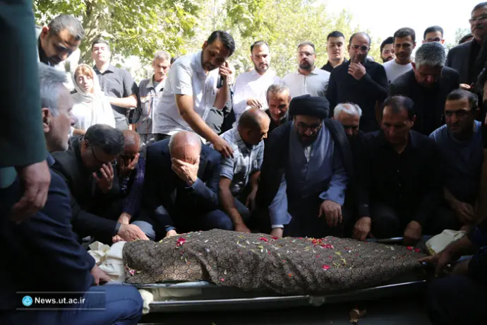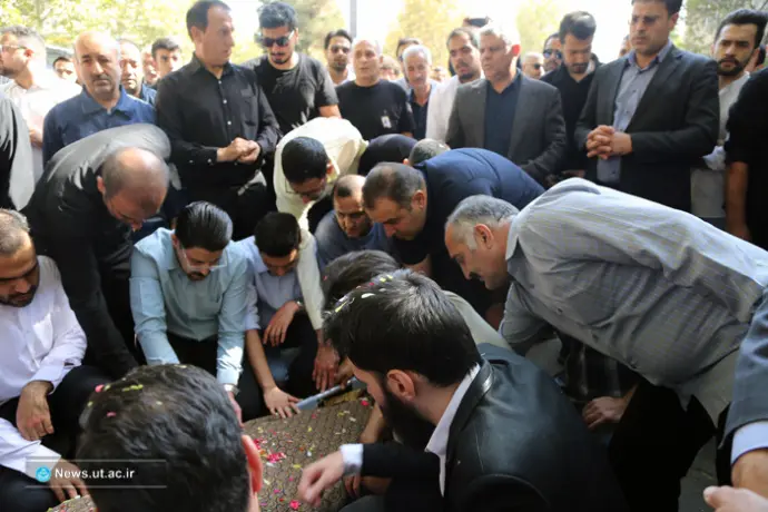 مراسم با حضور رئیس دانشگاه تهران، معاونان وزارت علوم، خانواده مرحوم و جمع زیادی از استادان، کارکنان و دانشجویان برگزار شد. پیکر وی از درب پردیس شماره ۲ تشییع شد و پس از اقامه نماز در میدان اصلی پردیس، به محل آزمایشگاه منتقل و در نهایت جهت خاکسپاری به بهشت زهرا (س) منتقل گردید.
